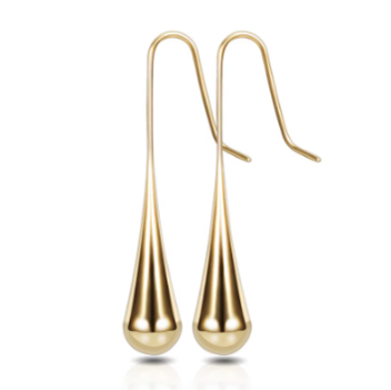 Long water drop gold earrings